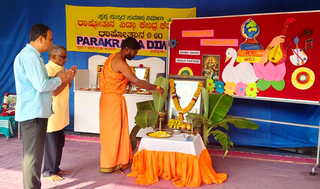 Kerur, Jan. 23: Rashtrotthana Vidya Kendra – Kerur celebrated Vasant Panchami and Parakram Diwas in his honour on the birth anniversary of Netaji Subhas Chandra Bose. Teachers explained the significance of Vasant Panchami as a festival that marks the arrival of spring and the beginning of new learning. Kumar Pawan offered prayers to Goddess Saraswati. Kumar Gopal spoke about the significance of Vasant Panchami which symbolises strength, prosperity and positivity. Students highlighted how they should respect education, books and teachers and strive for excellence in academics and character. Students gave an inspiring speech on Netaji’s life, leadership and courage. His message of “Give me blood, I will give you freedom” was remembered. The importance of courage, self-confidence, discipline and patriotism was explained.