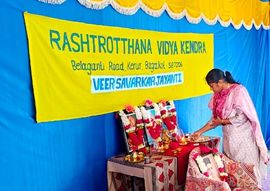 Rashtrotthana Vidya Kendra – Kerur. The Principal spoke about Veer Savarkar’s sacrifice, fearless revolutionary activities, bravery, and Hindutva.
