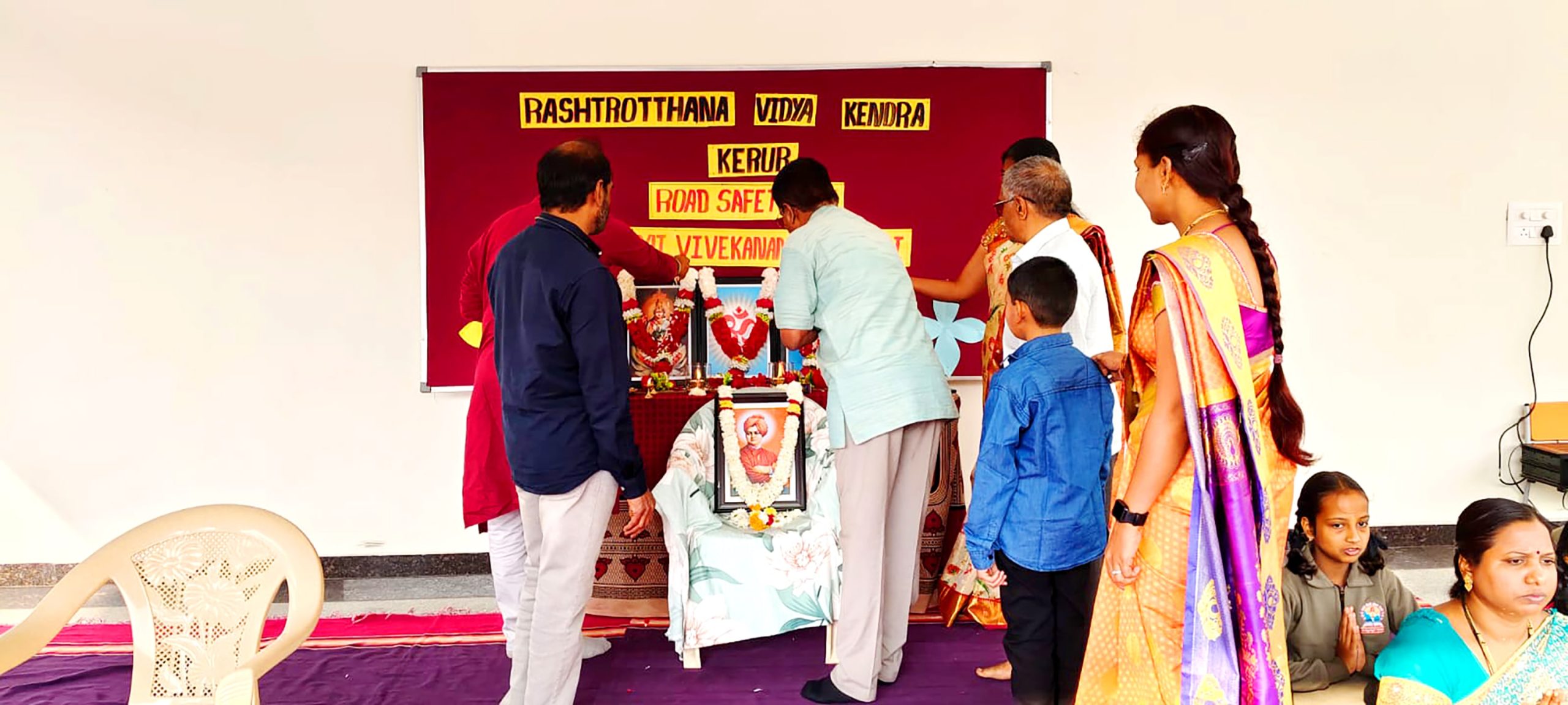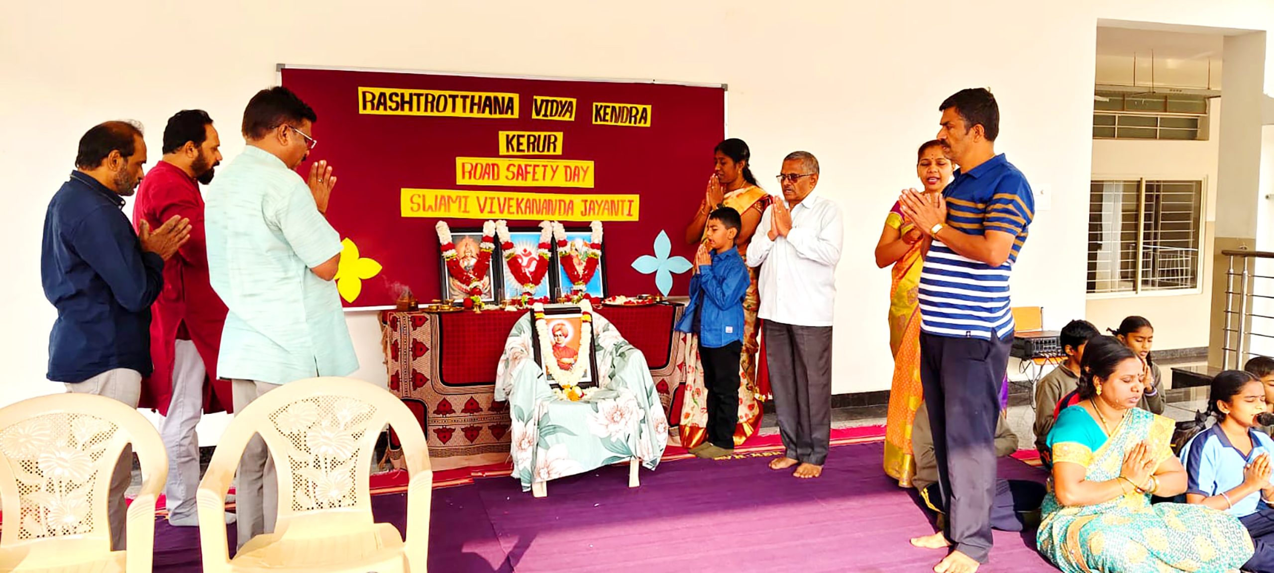 Kerur, Jan. 10: Vivekananda Jayanti and Road Safety Day were celebrated herein Rashtrotthana Vidya Kendra- Kerur.Students talked about Vivekananda’s life achievements and road safety in daily life.Later, Sri Jayanna told the children about Vivekananda’s childhood.